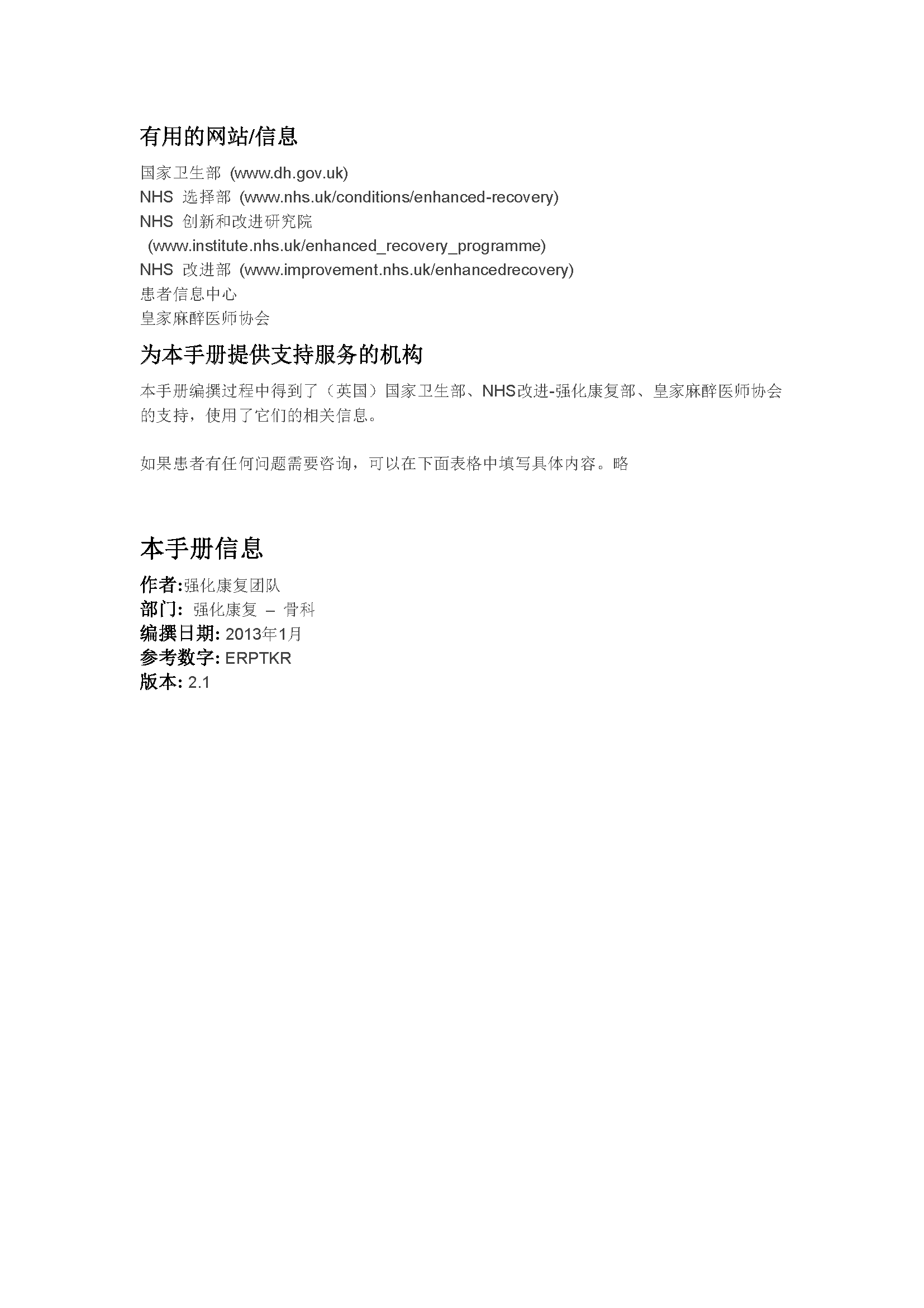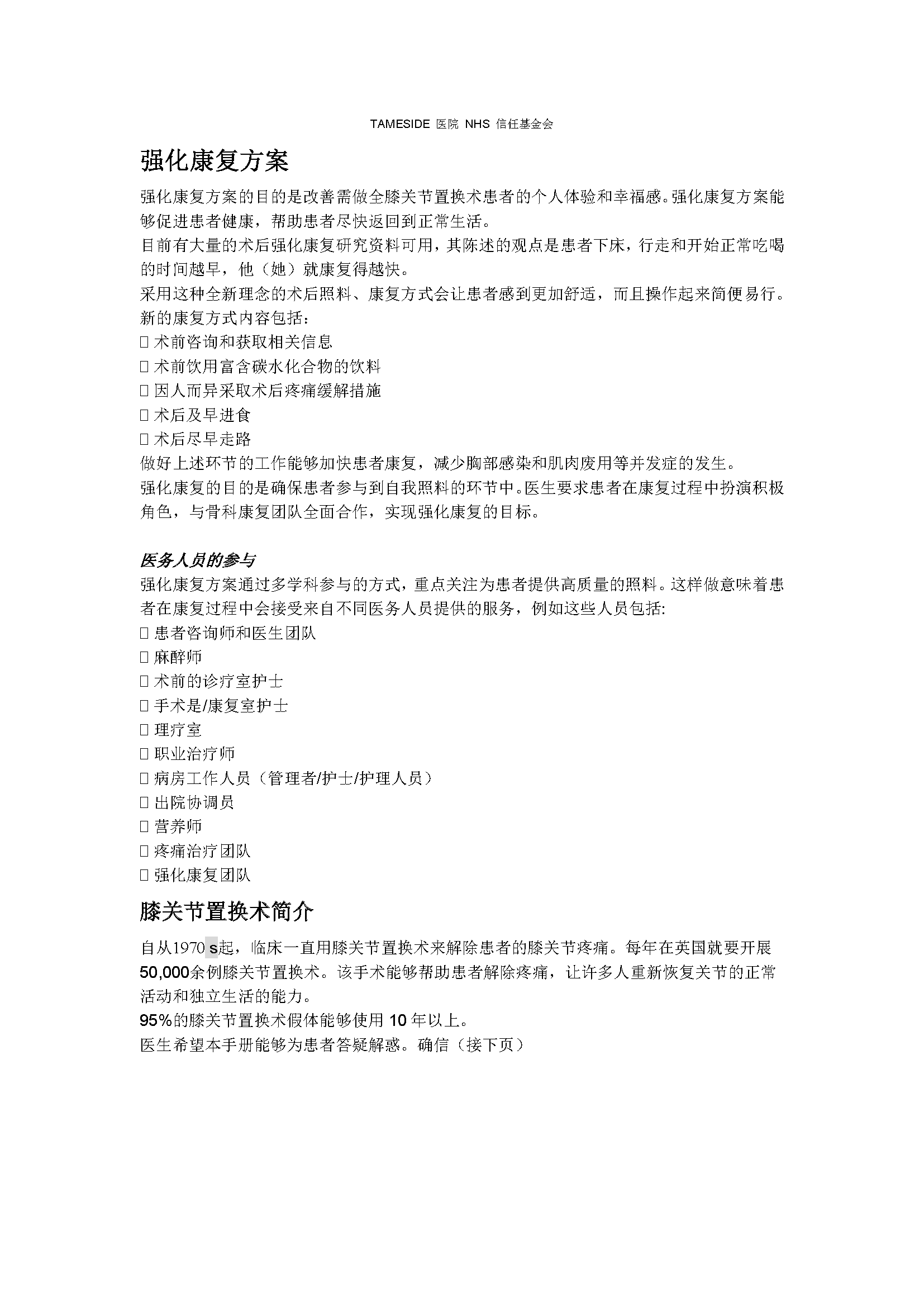 全膝关节置换术患者强化康复方案(英国)