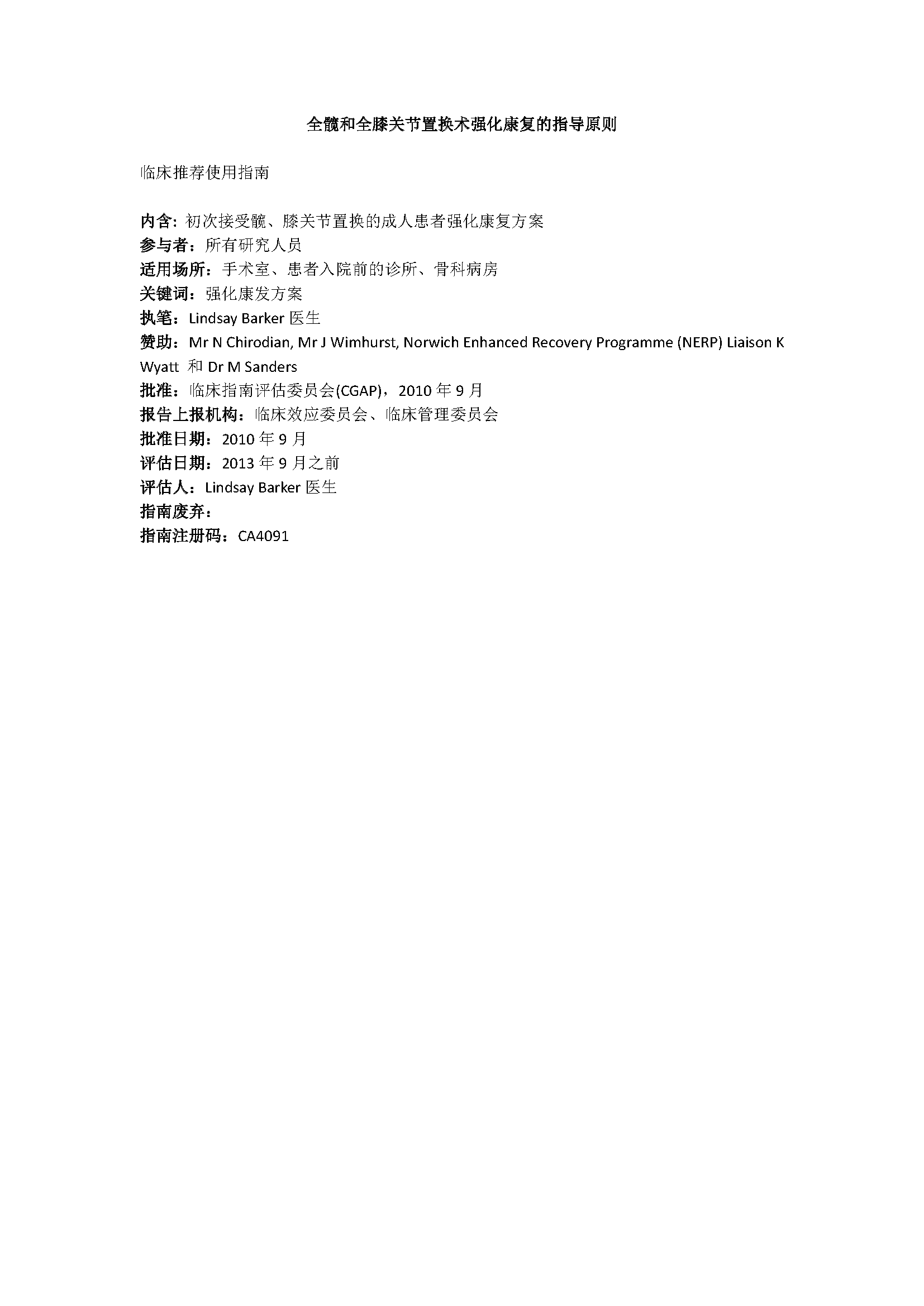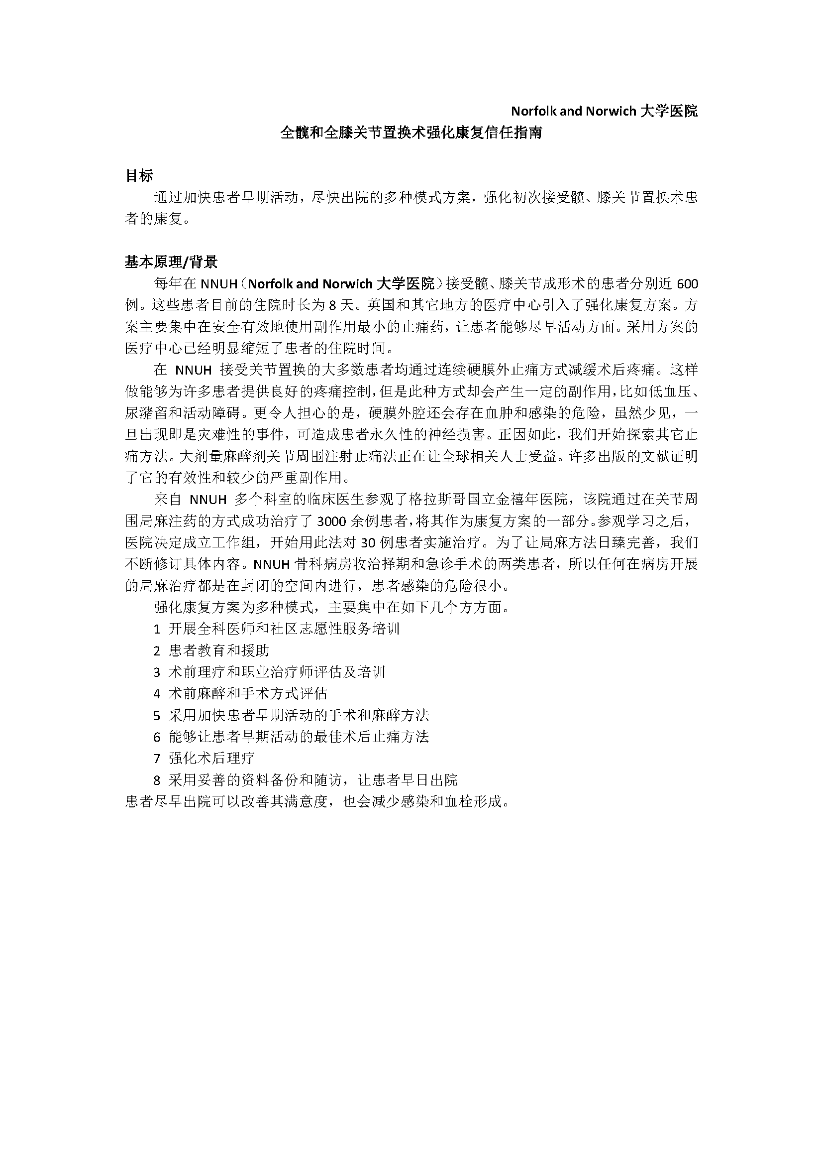 全髋和全膝关节置换术强化康复的指导原则(英国)