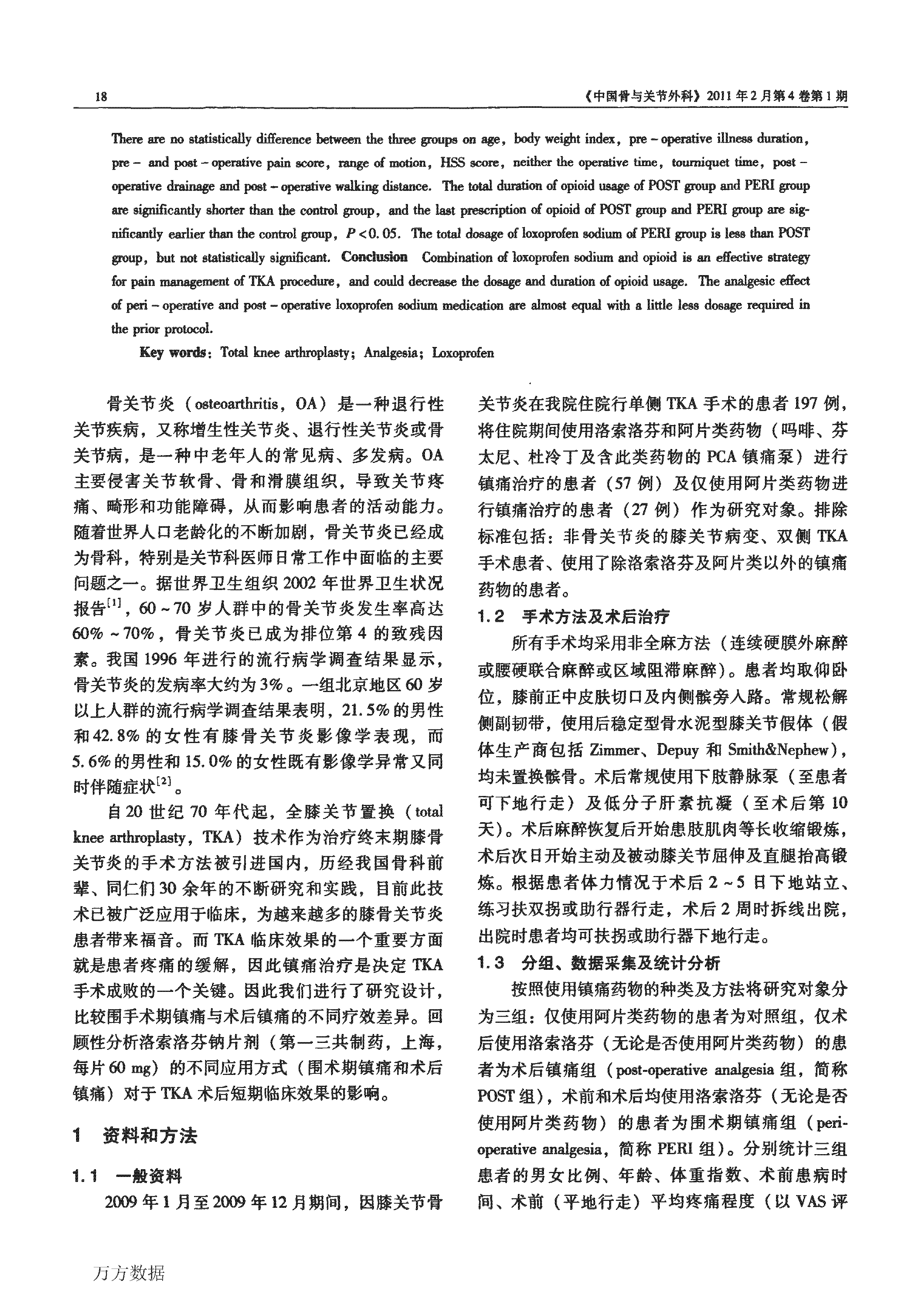 洛索洛芬在全膝关节置换的围手术期 镇痛与术后镇痛中的研究