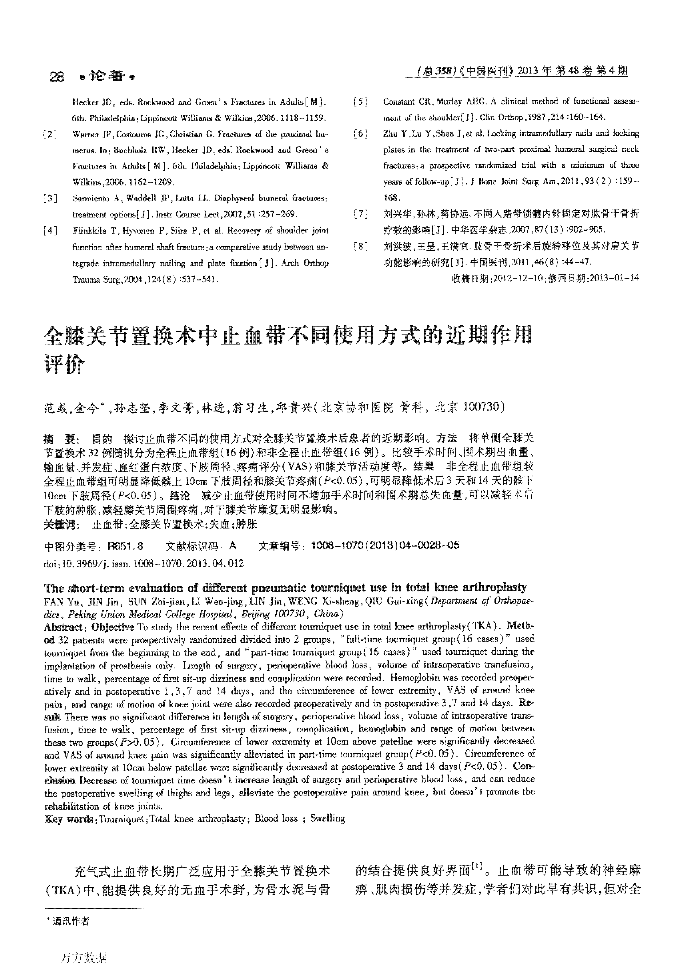 您的位置 > 学术前沿 > 研究 > 全膝关节置换术中止血...