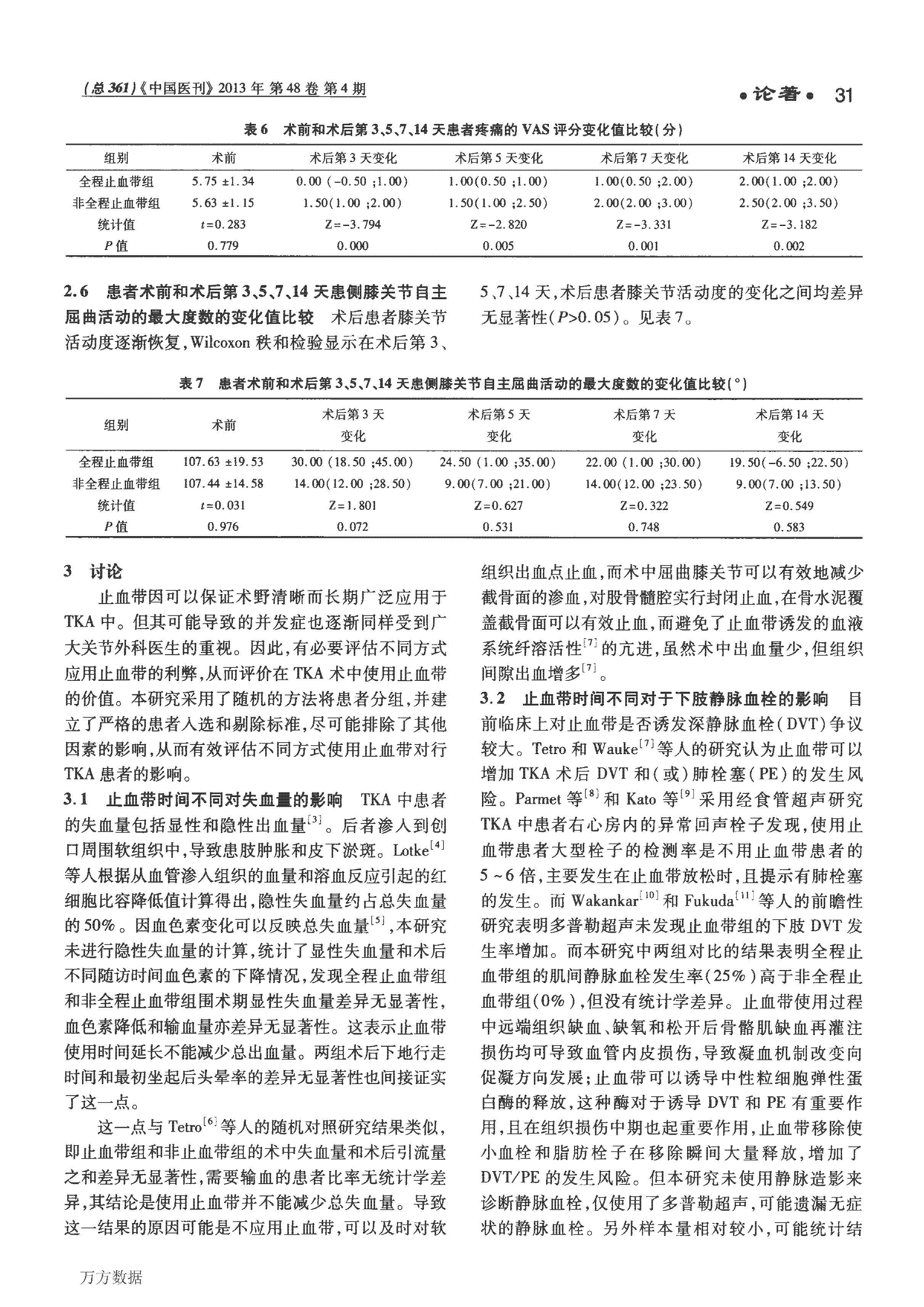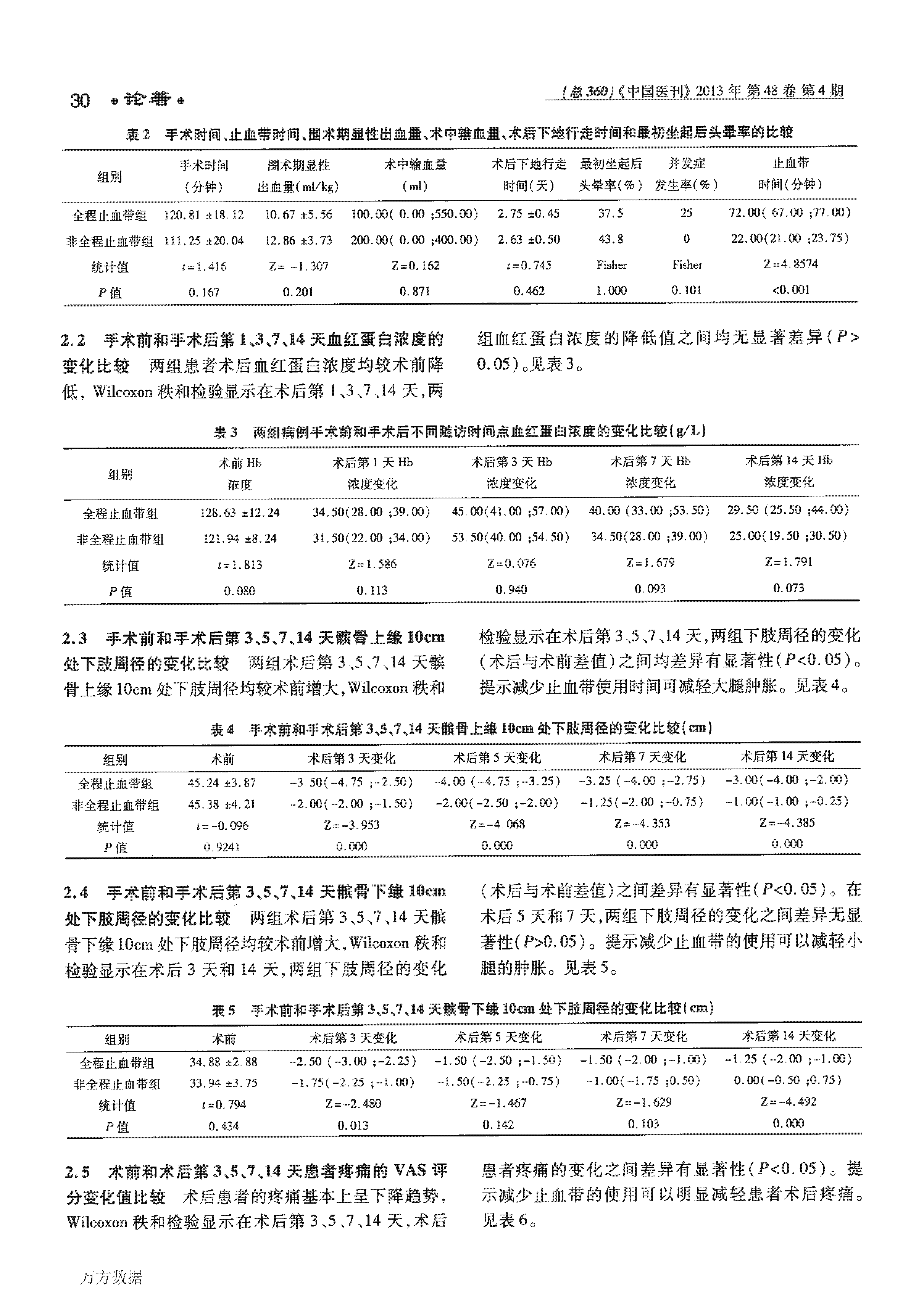 全膝关节置换术中止血带不同使用方式的近期作用 评价