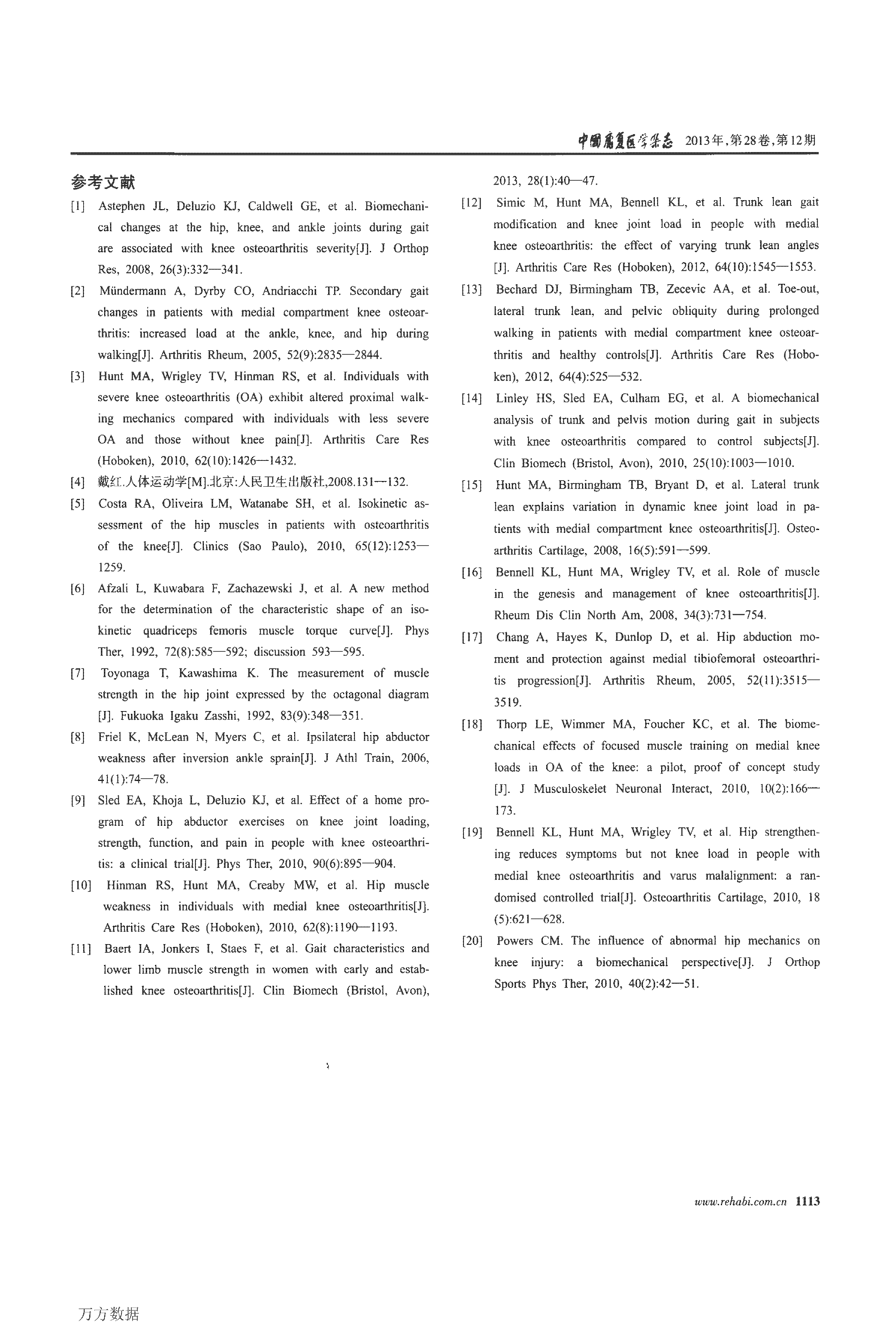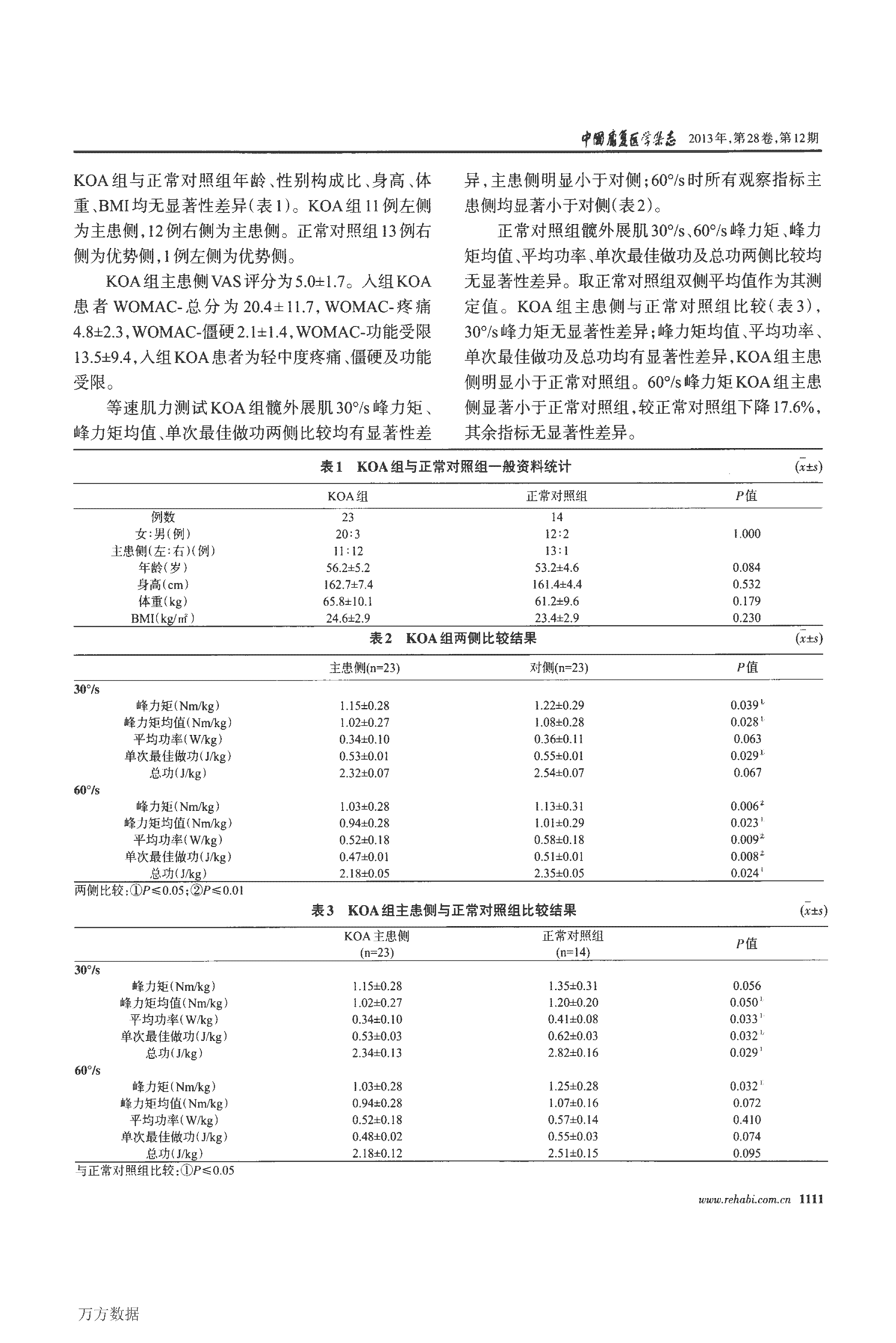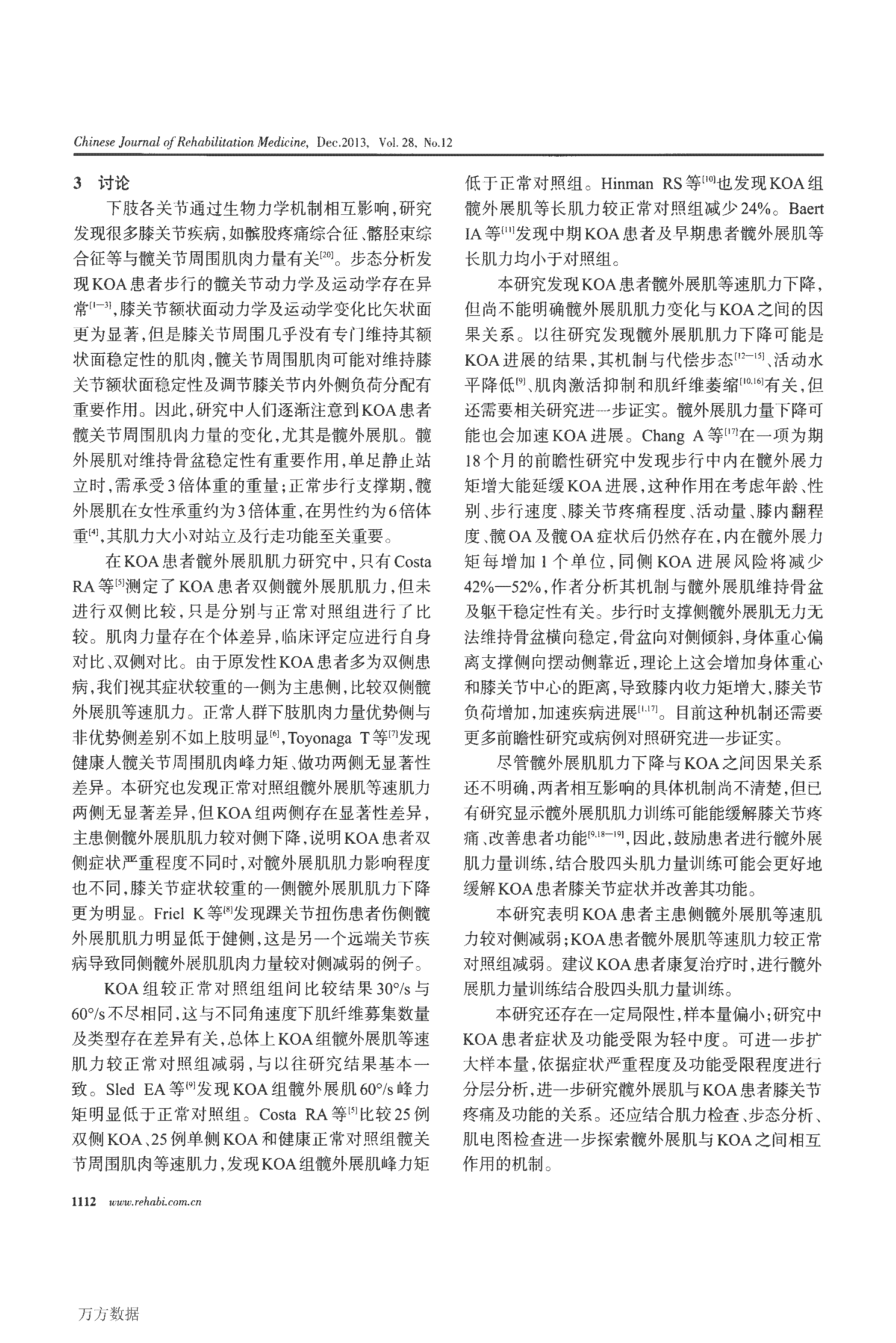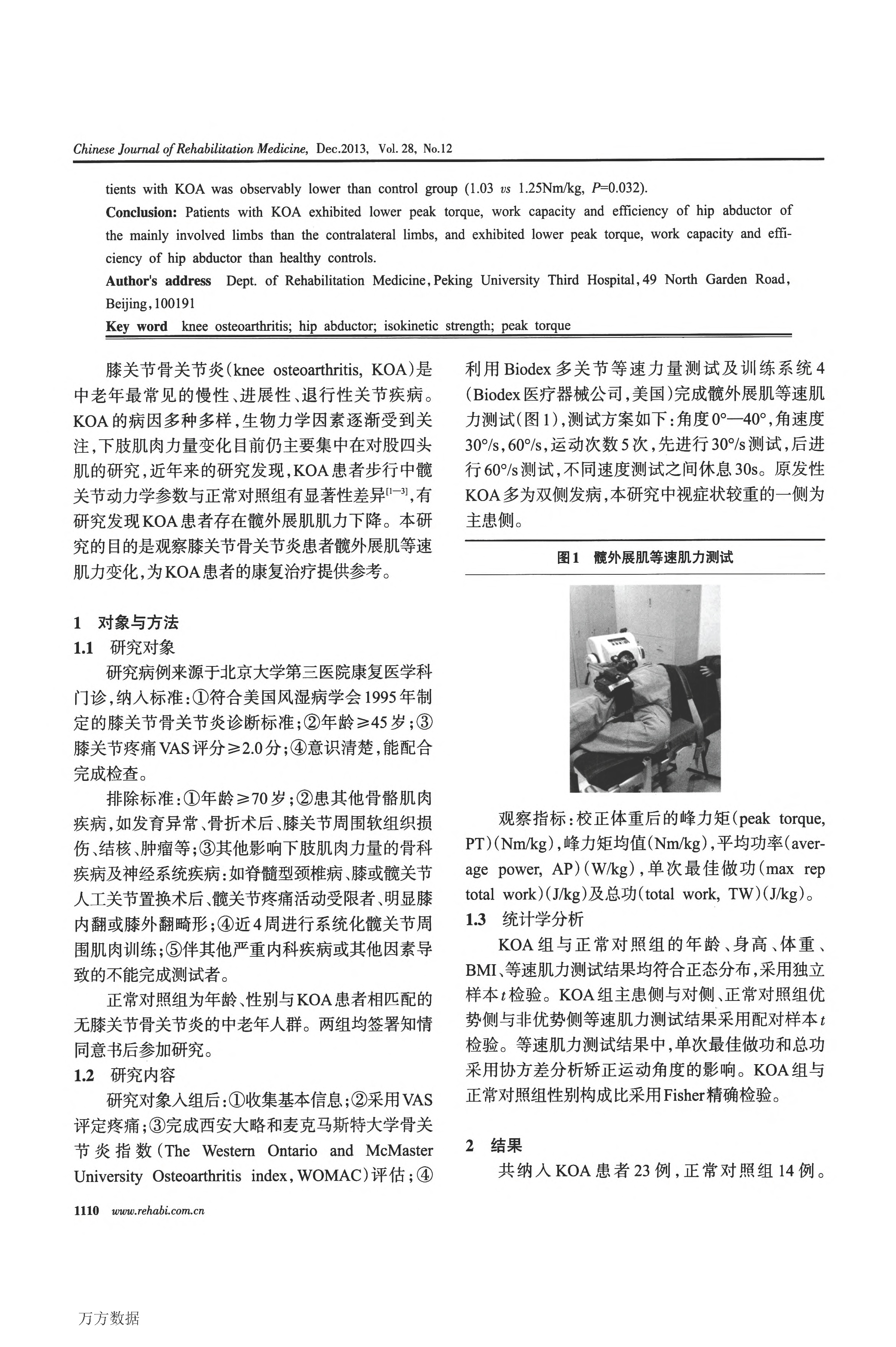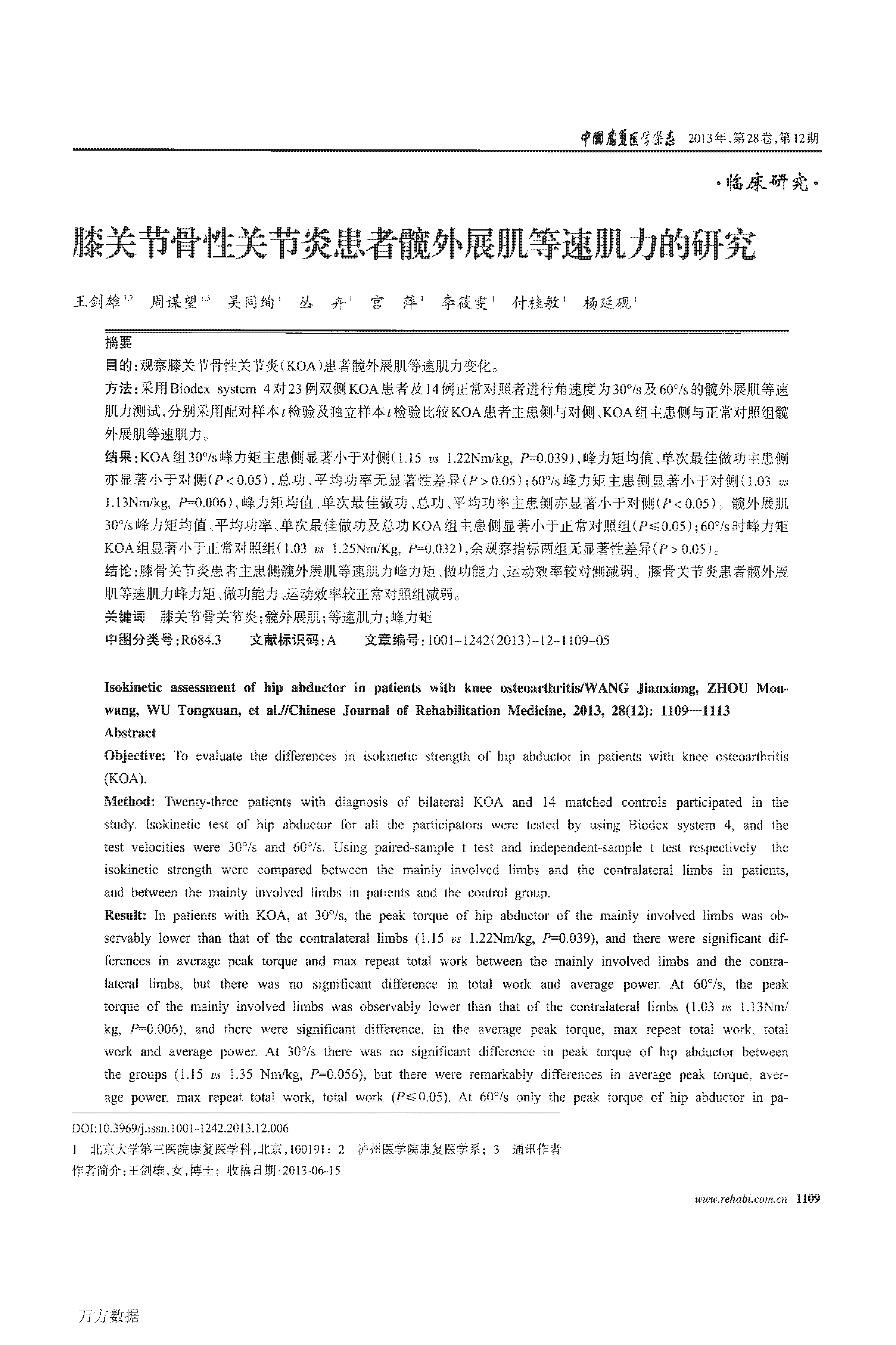 膝关节骨性关节炎患者髋外展肌等速肌力的研究