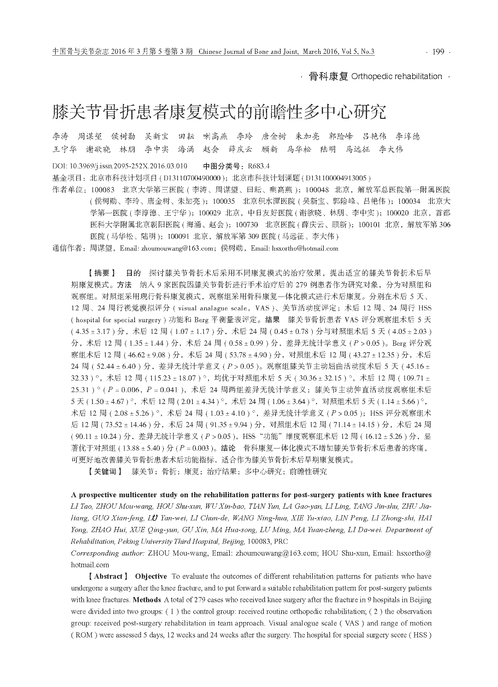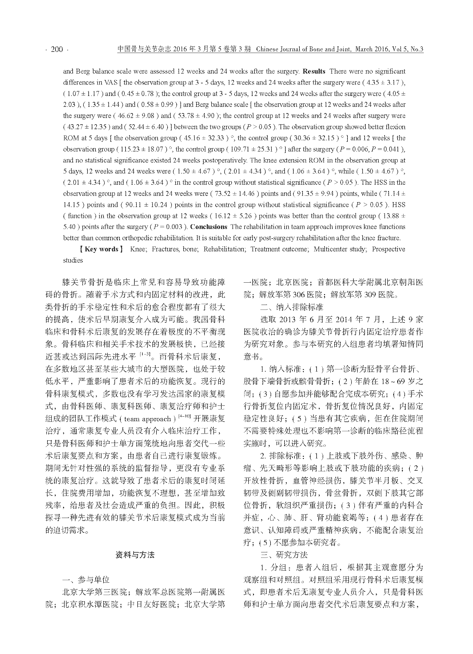 膝关节骨折患者康复模式的前瞻性多中心研究