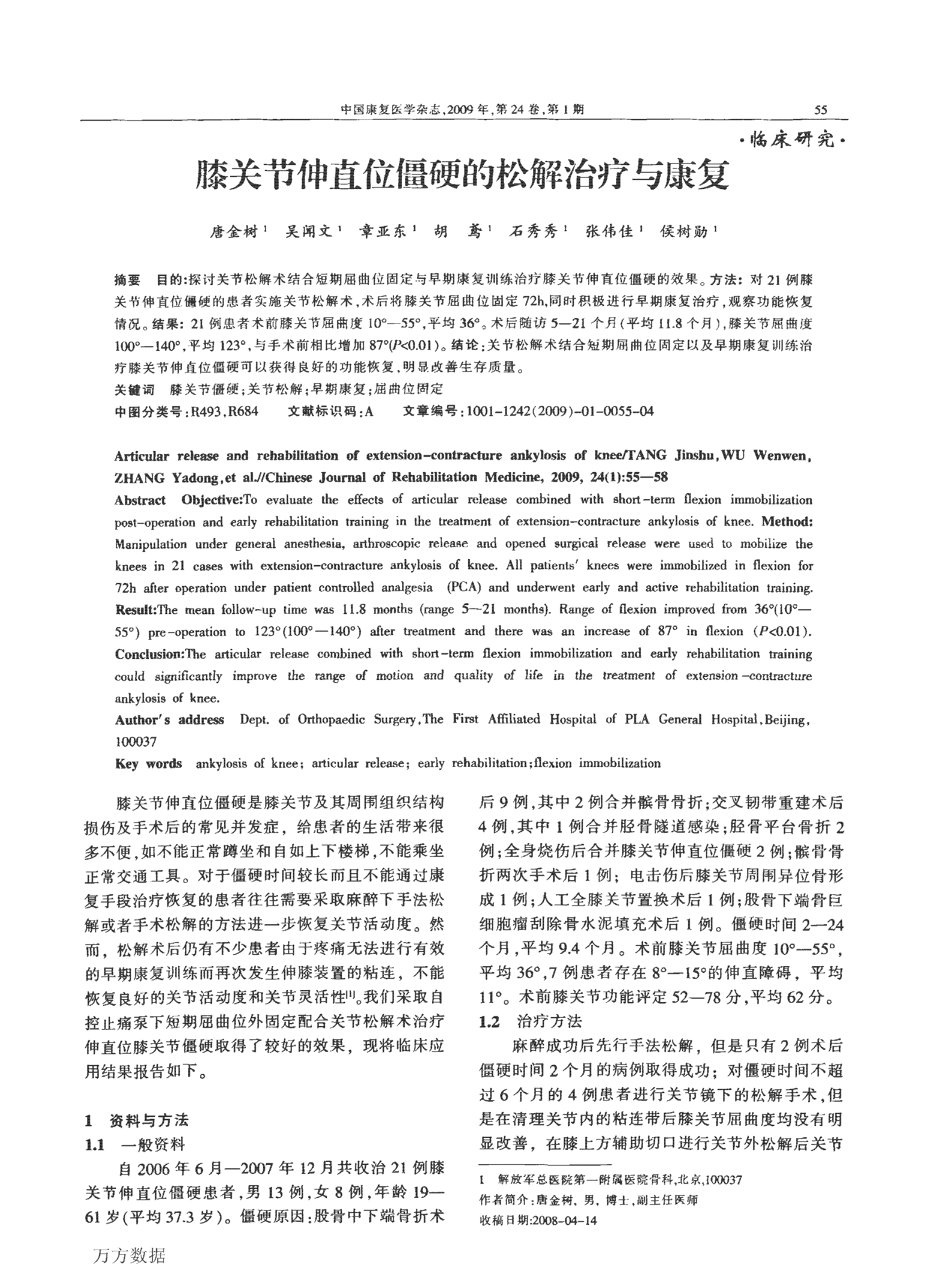 您的位置 > 学术前沿 > 研究 > 膝关节伸直位僵硬的松...