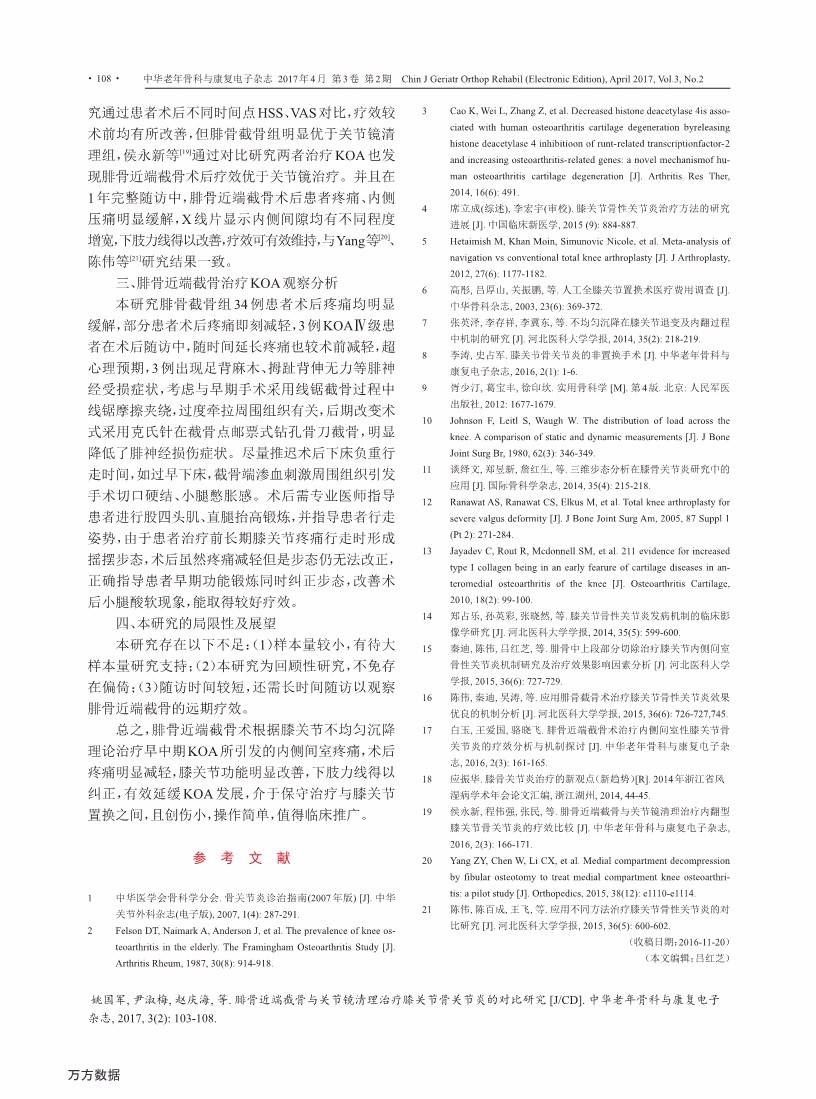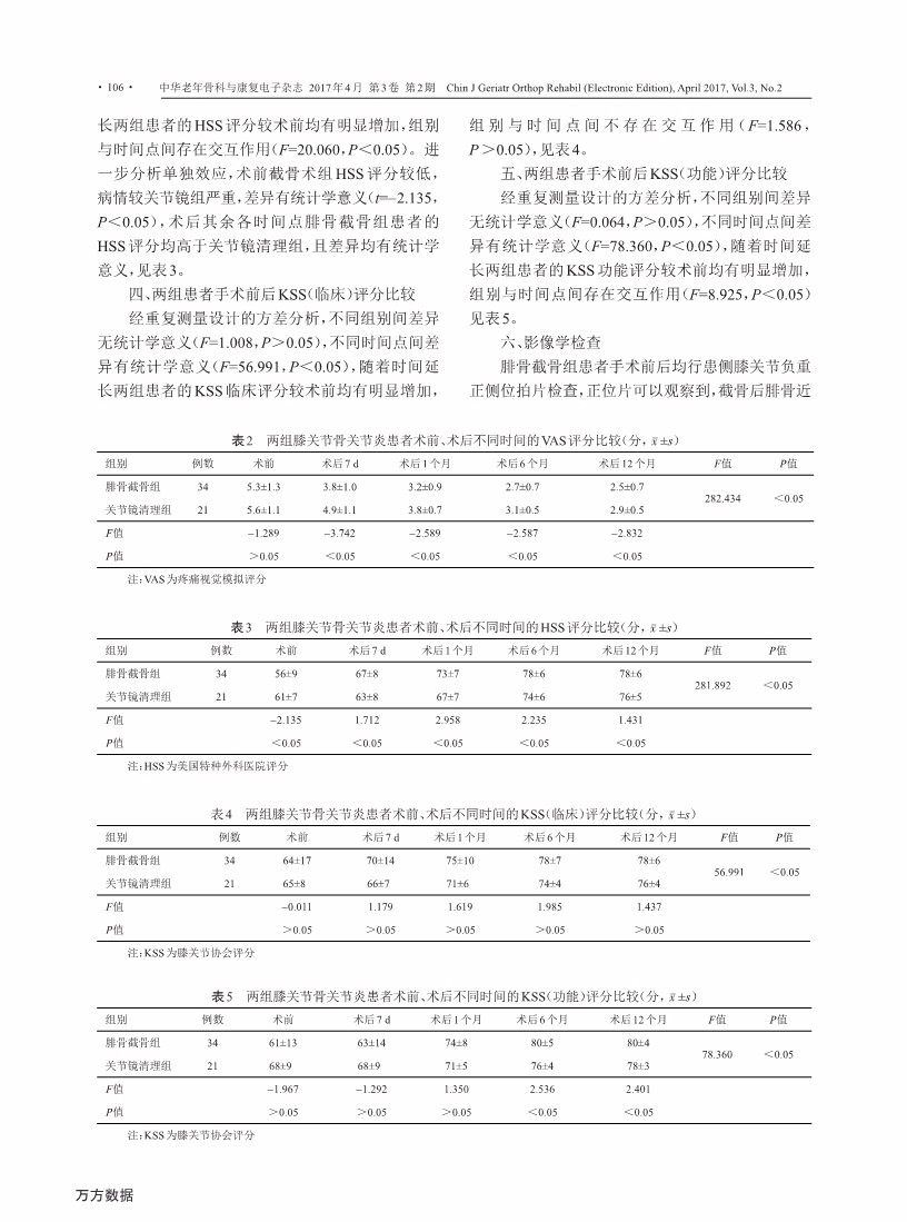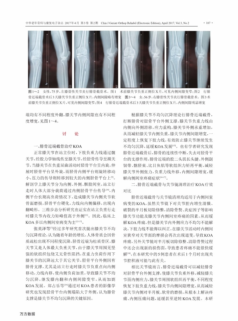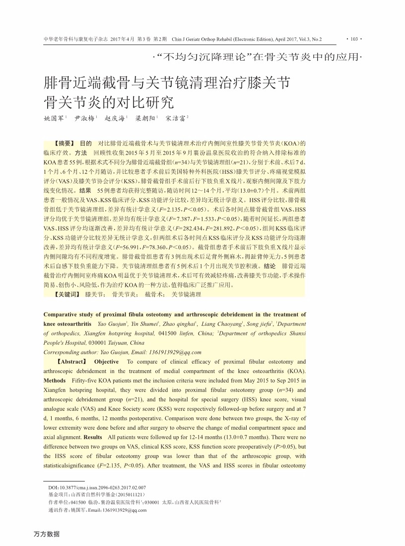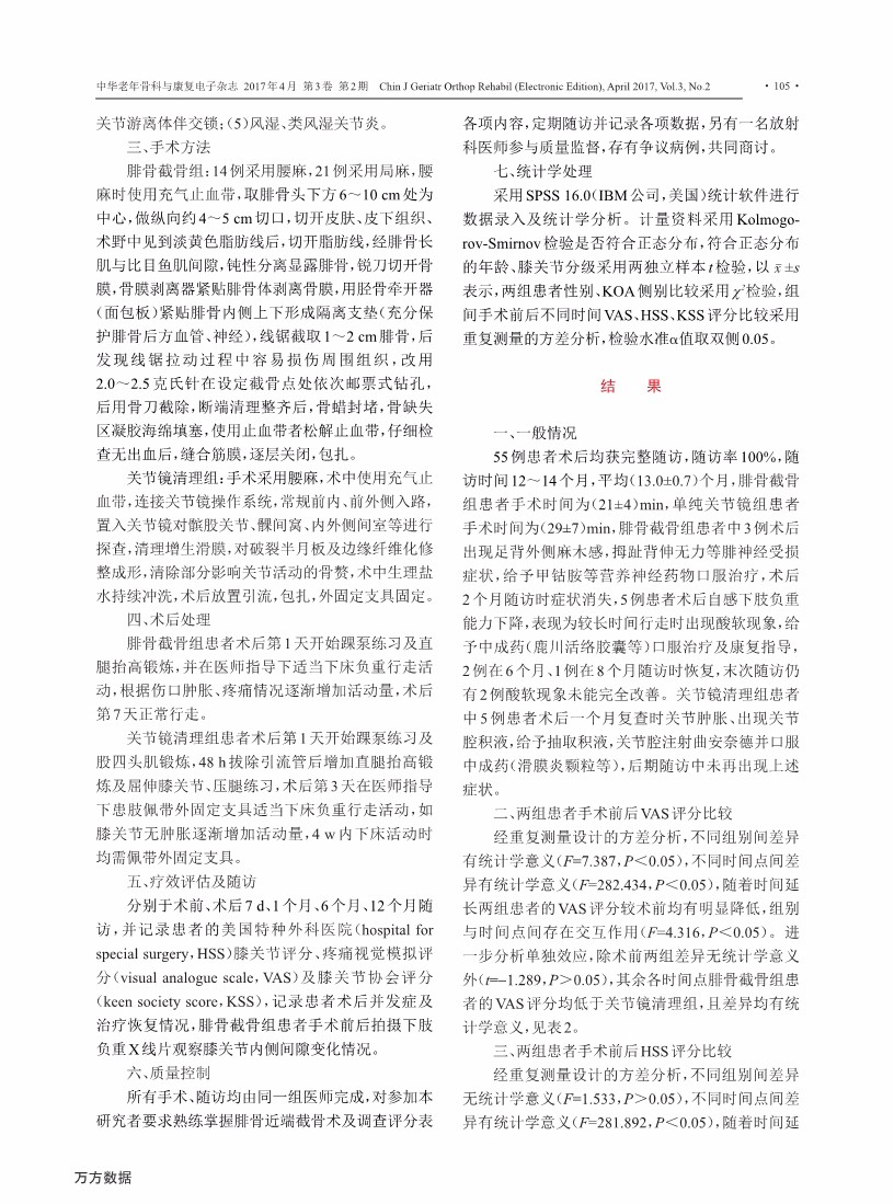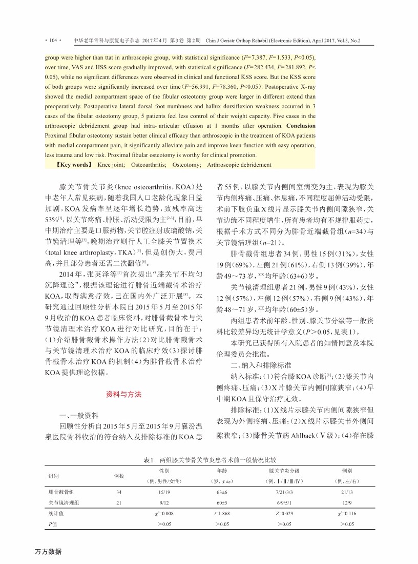 腓骨近端截骨与关节镜清理治疗膝关节 骨关节炎的对比研究