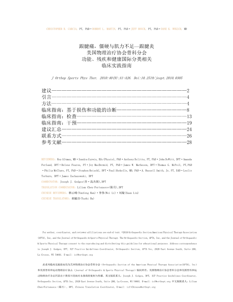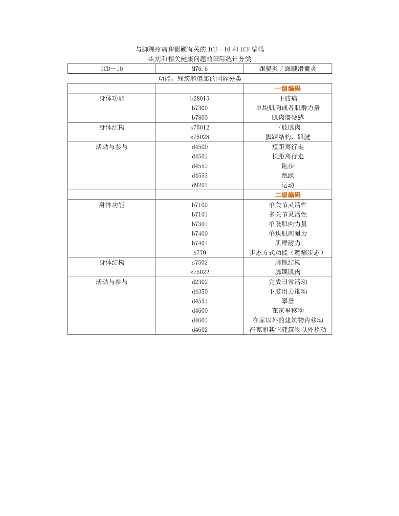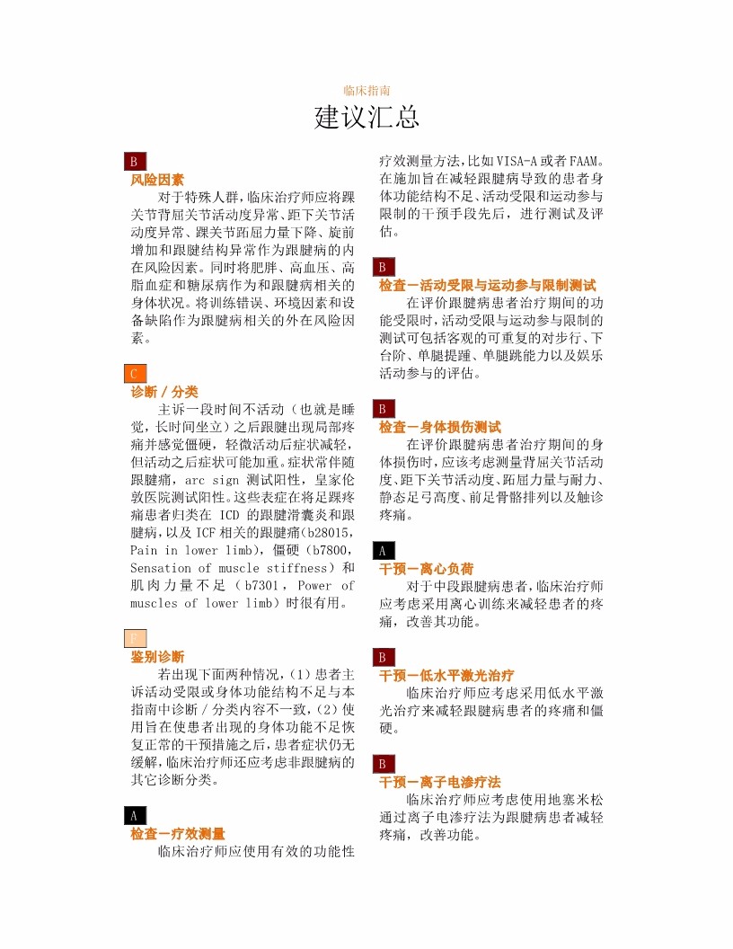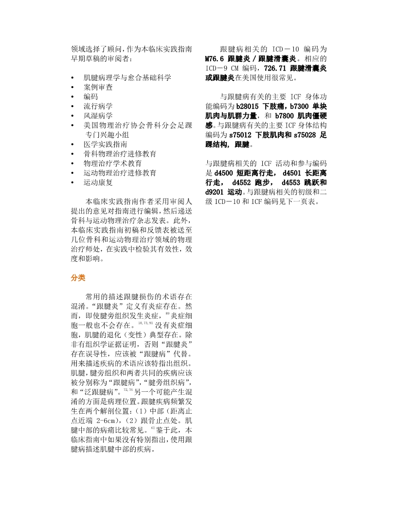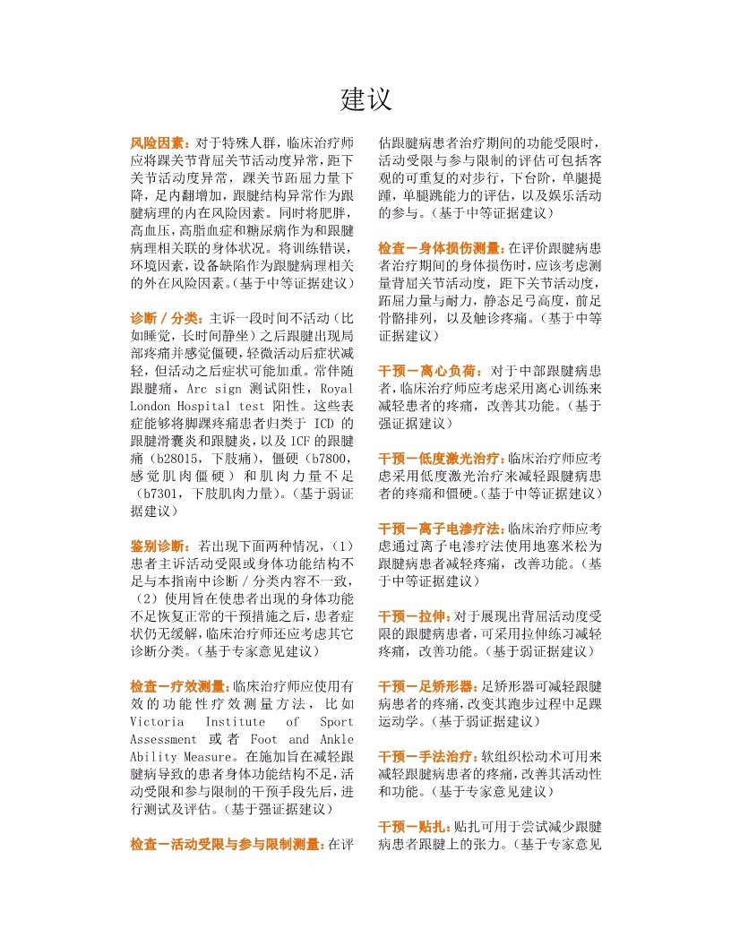 跟腱痛,僵硬与肌力不足—跟腱炎 美国物理治疗协会骨科分会 功能、残疾和健康国际分类相关 临床实践指南