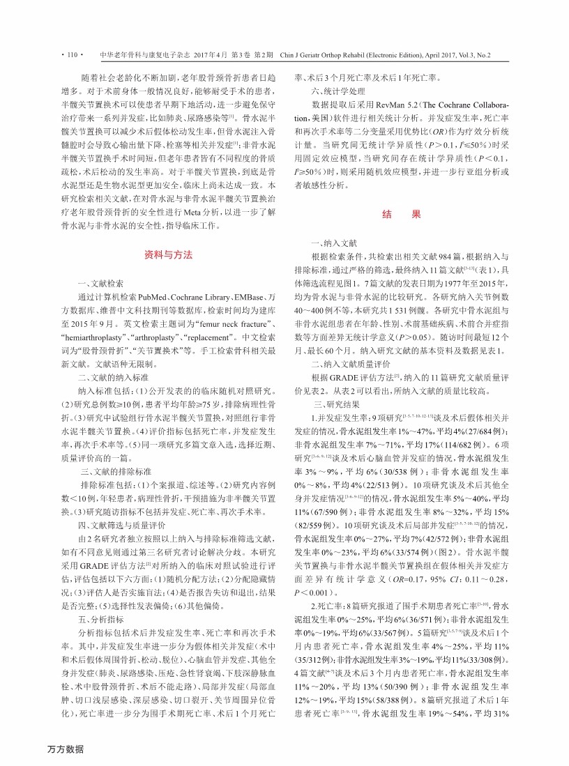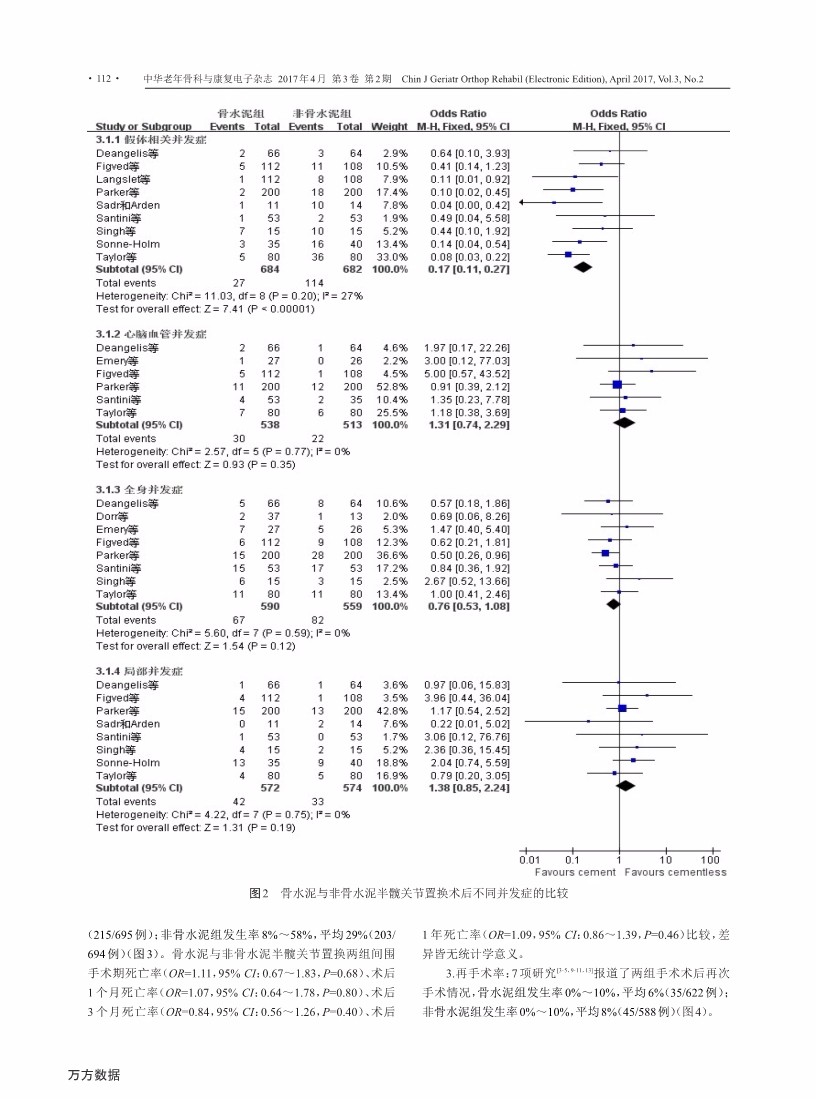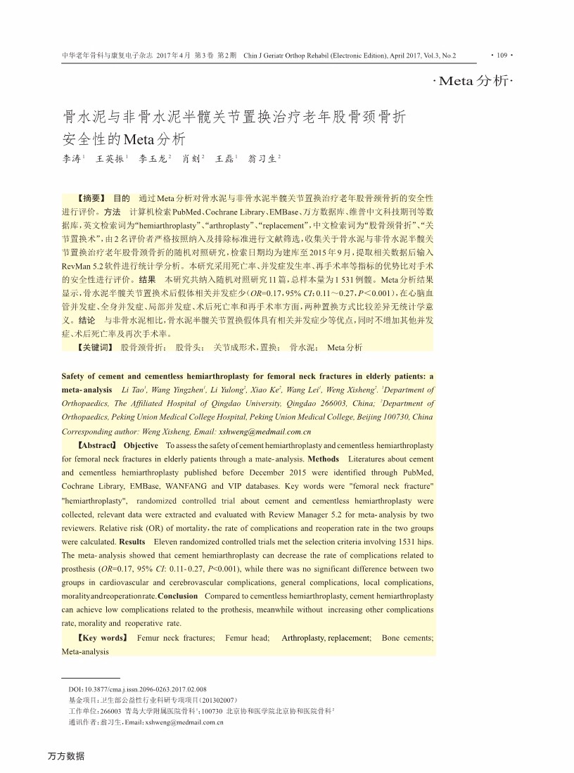 骨水泥与非骨水泥半髋关节置换治疗老年股骨颈骨折 安全性的Meta分析