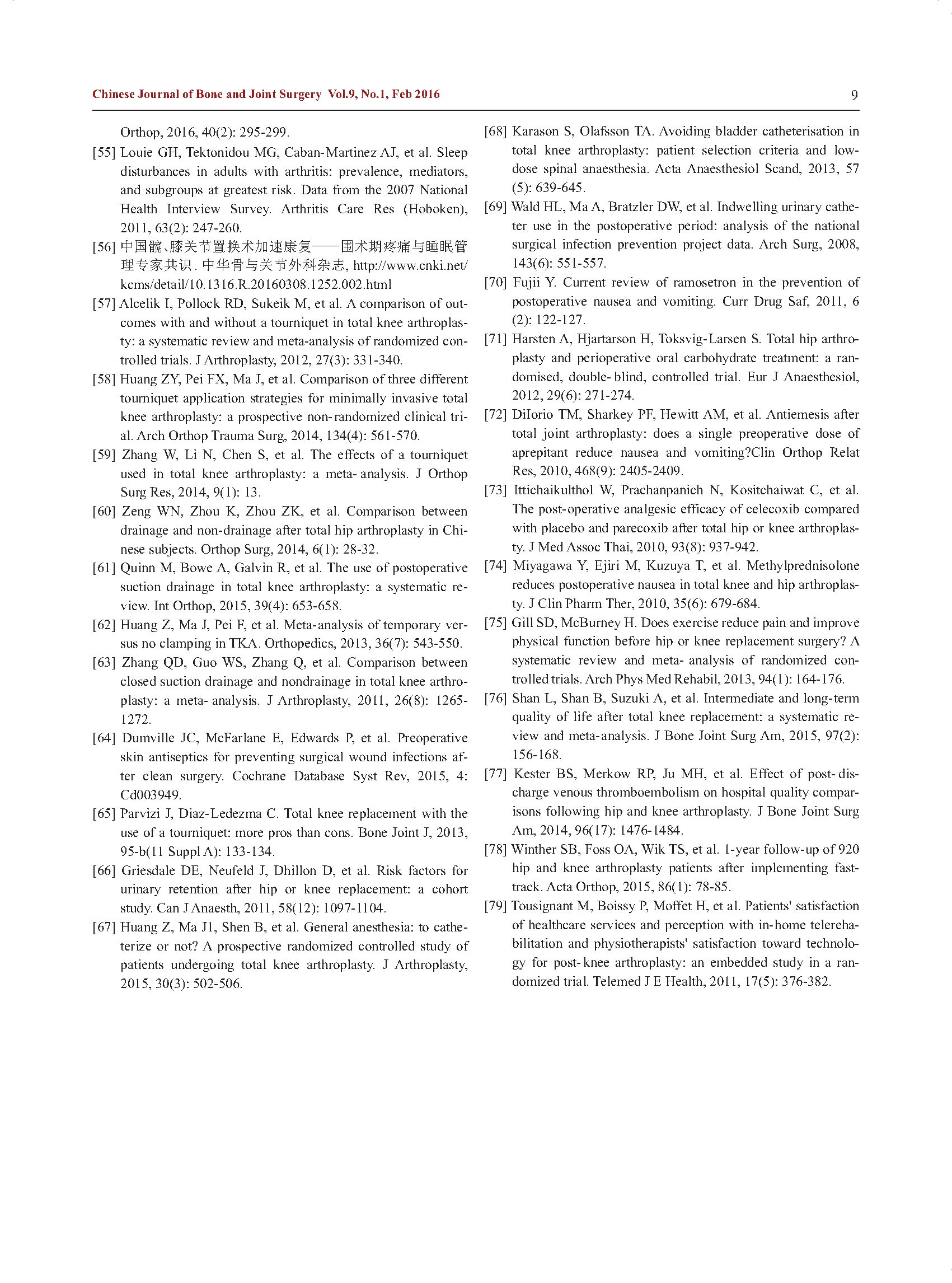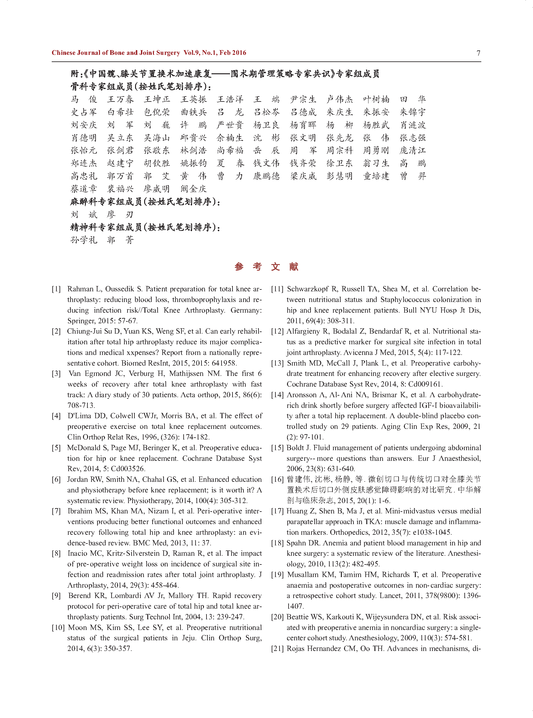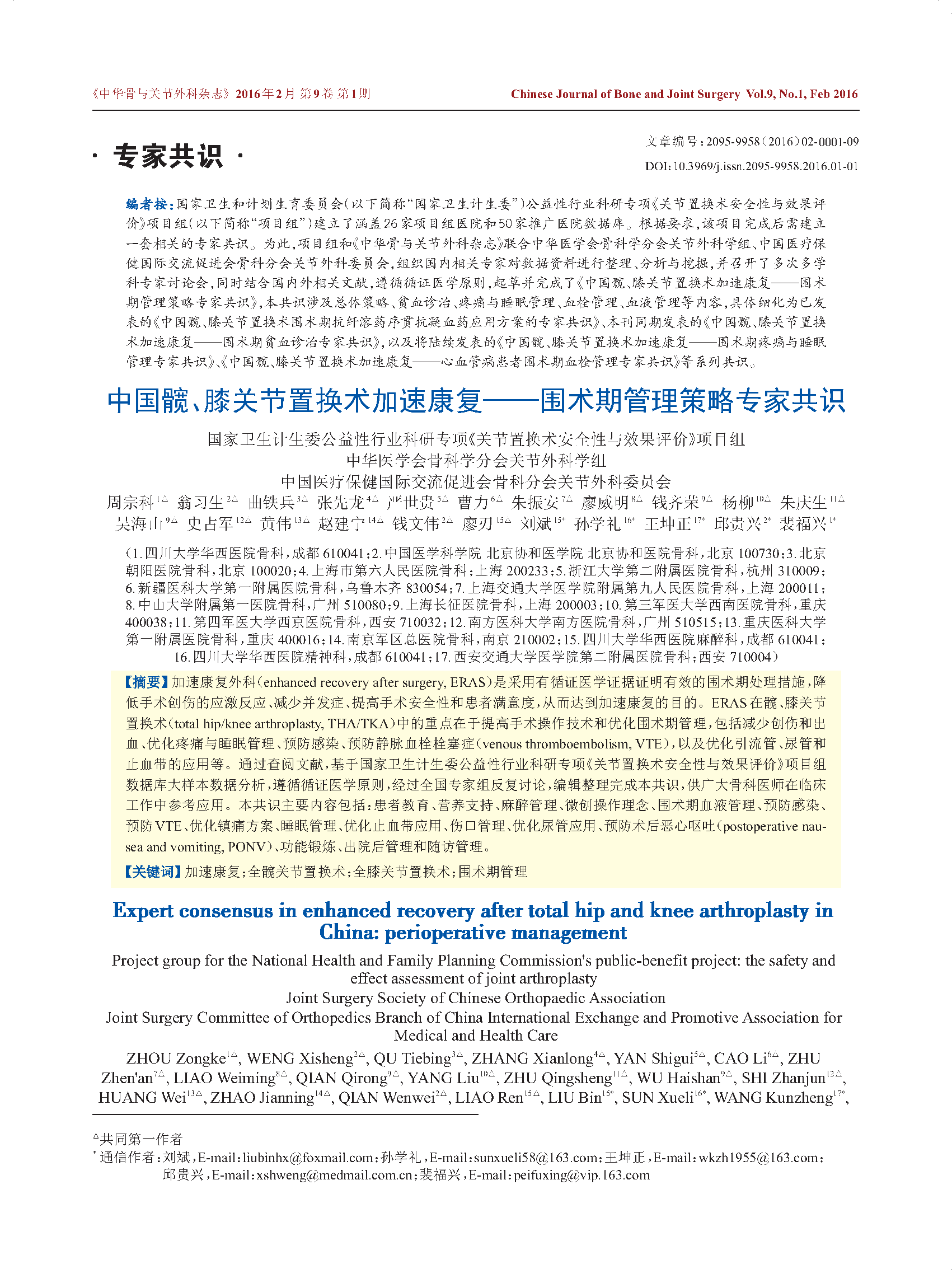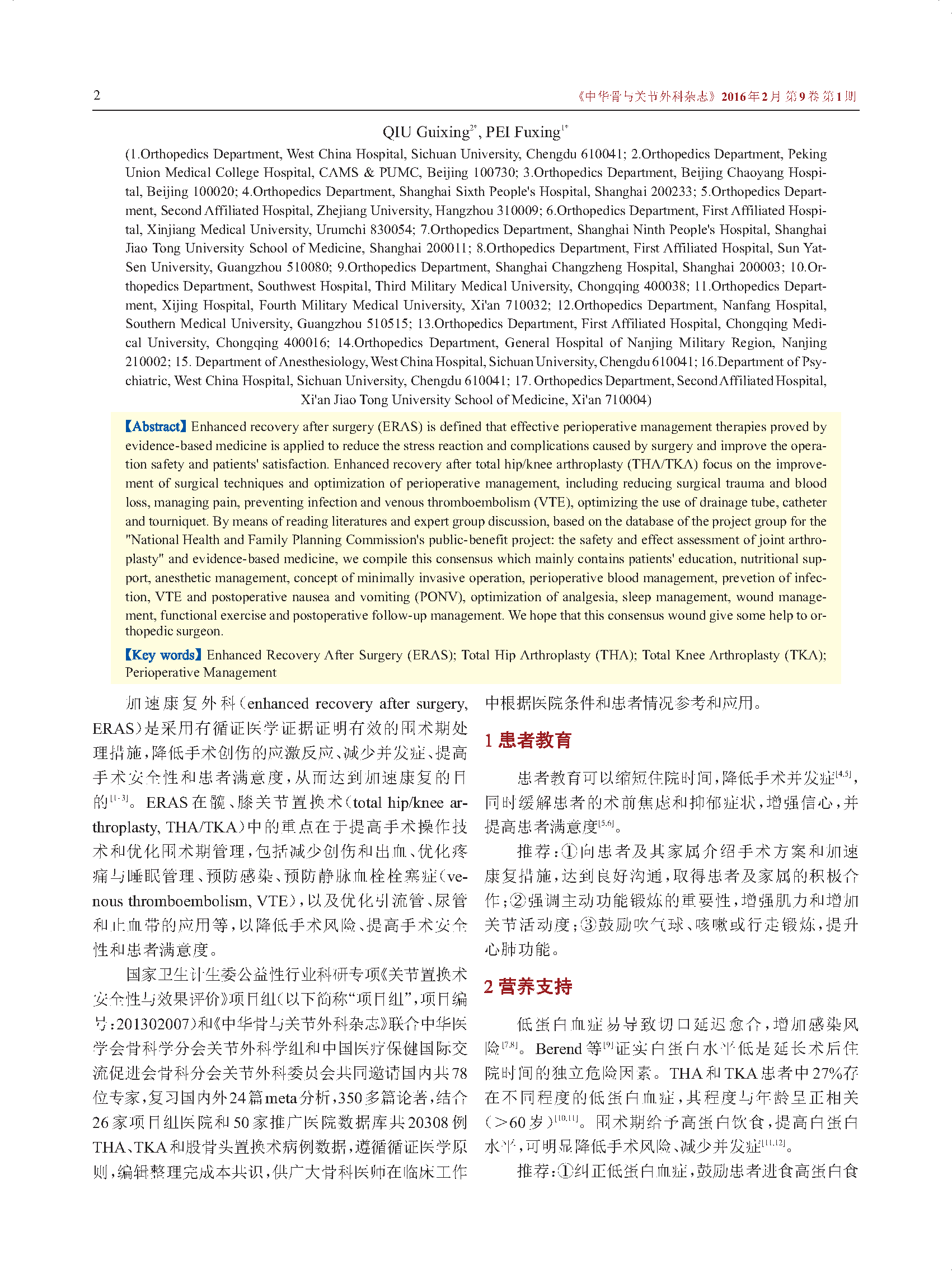 中国髋、膝关节置换术加速康复——围术期管理策略专家共识