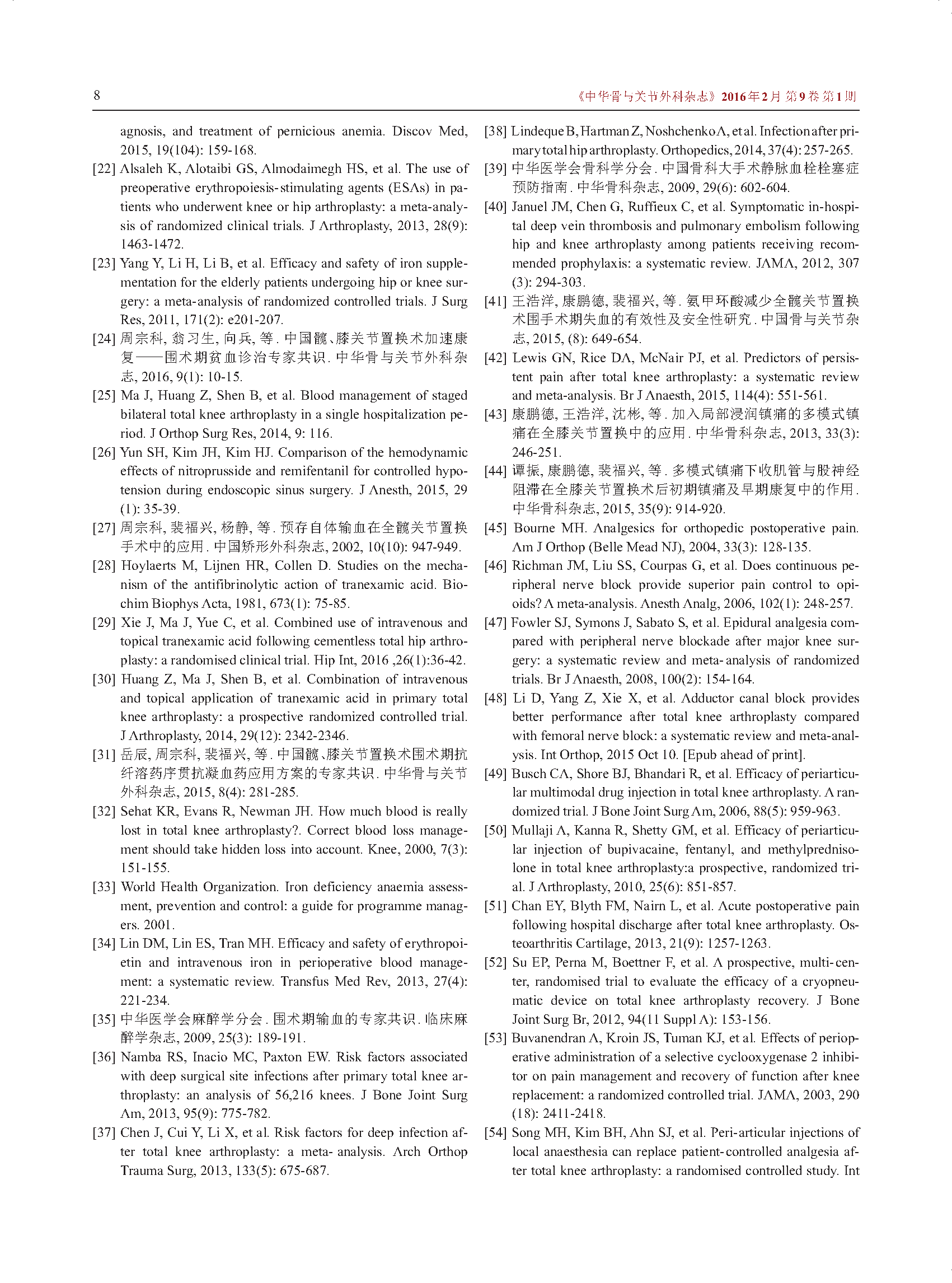 中国髋、膝关节置换术加速康复——围术期贫血诊治专家共识
